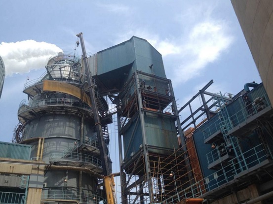 協(xié)鑫太倉超低排放項(xiàng)目吸收塔增高成功頂升