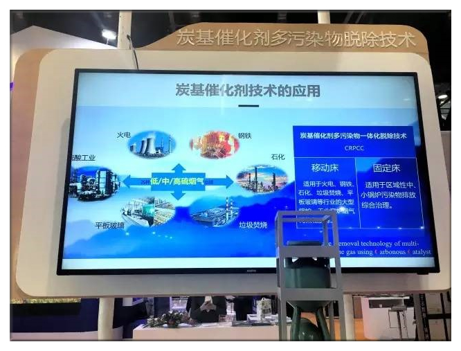 北京國能中電節(jié)能環(huán)保技術(shù)股份有限公司是國能中電集團旗下的控股子公司,主要從事節(jié)能環(huán)保業(yè)務(wù)。國能中電在展會中重點展示了一項新技術(shù):炭基催化劑干法煙氣多種污染物一體化脫除技術(shù)。該技術(shù)是國能中電基于中國科學(xué)院的國家863課題超過20年的實驗室研究進行的工業(yè)成果轉(zhuǎn)化,并于今年上半年在濟南鋼鐵獲得工業(yè)級試驗成功。
