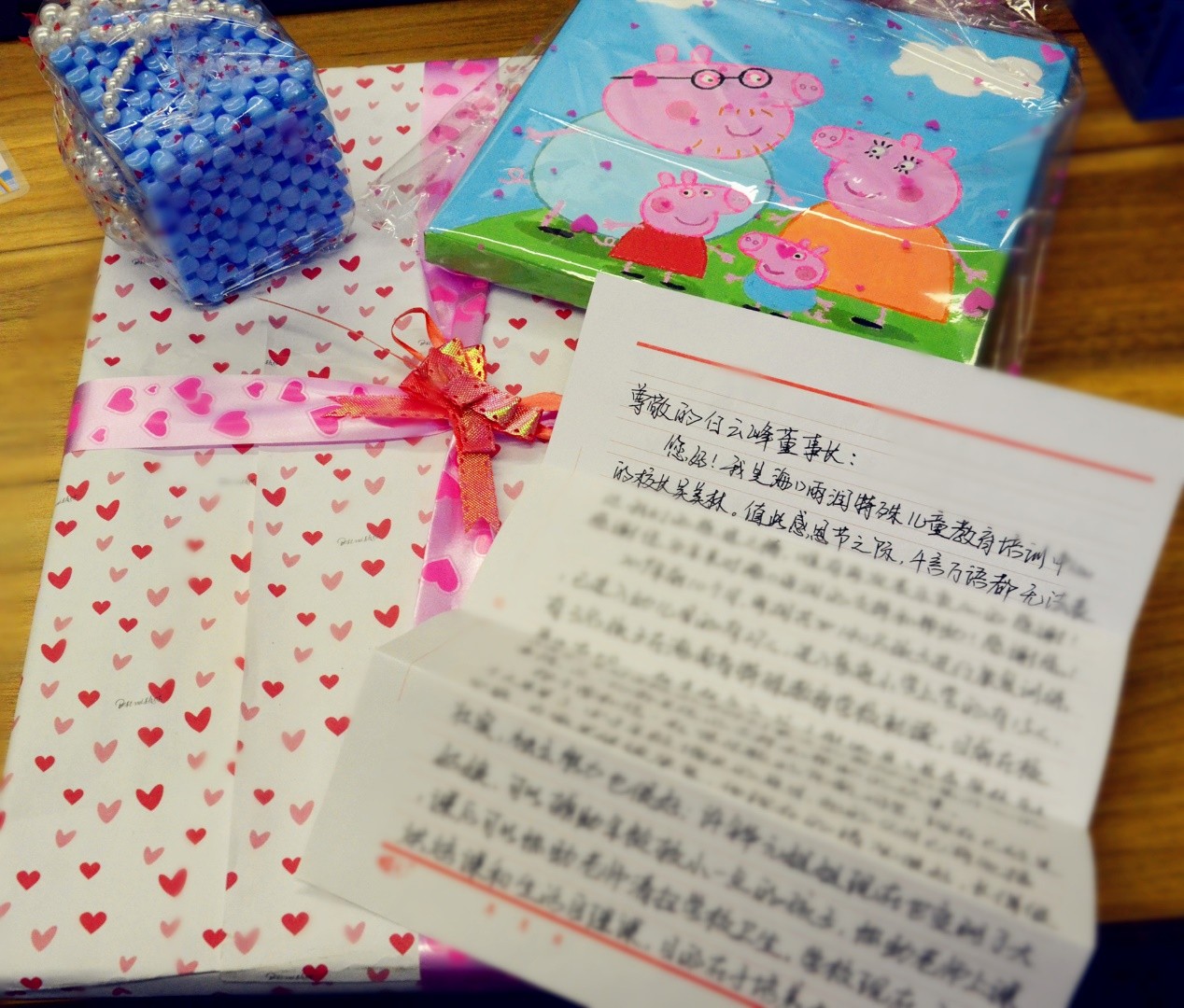 寫信的人是海口雨潤特殊兒童教育培訓中心校長吳美林,禮物則是由學校的自閉癥兒童及智力發(fā)育遲緩兒童親手制作,一同寄過來的還有一沓厚厚的照片,那是學校孩子們接受教育和康復訓練的活動掠影。