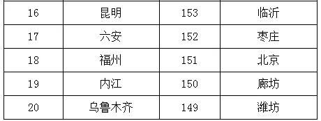 2019年1-6月,168個重點城市中臨汾、邢臺、石家莊市等20個城市空氣質量相對較差(從第168名到第149名);海口、拉薩、深圳市等20個城市空氣質量相對較好(從第1名到第20名,見附表2)。