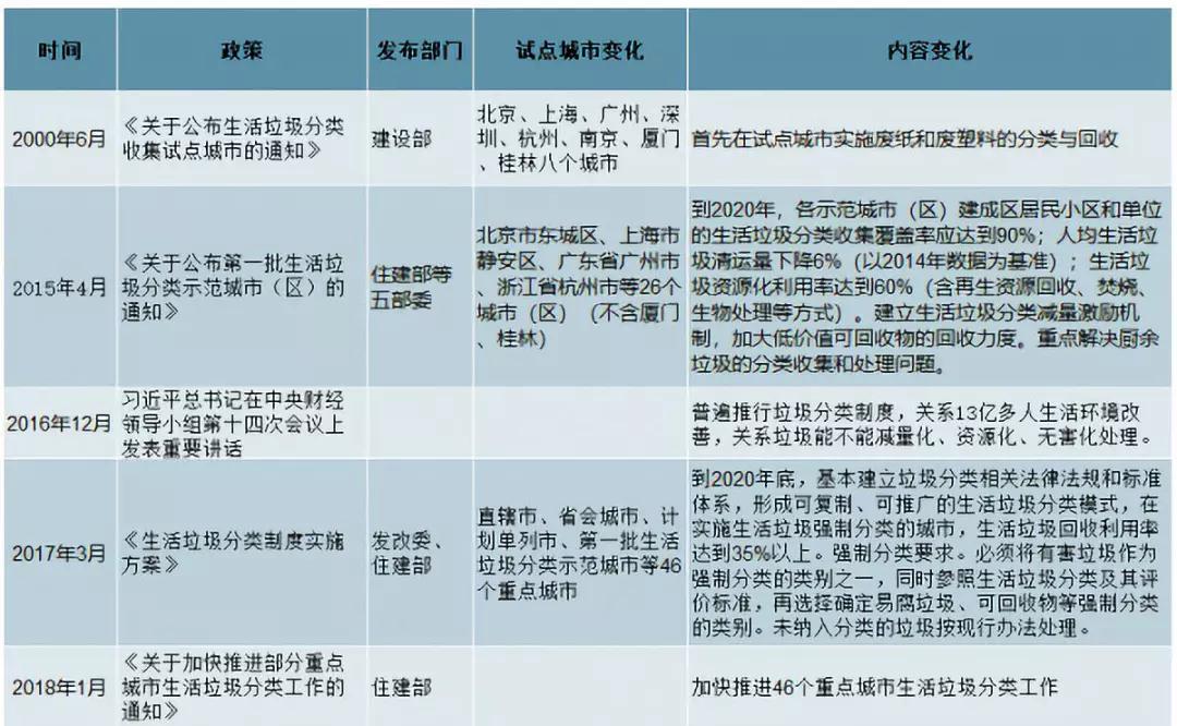垃圾分類政策開啟廚余垃圾處理市場。2000年,北京、上海等8個城市被列為生活垃圾分類試點城市;2015年,26個城市(區(qū))被列為“全國第一批生活垃圾分類示范城市(區(qū))”;2017年,發(fā)改委住建部發(fā)布《生活垃圾分類制度實施方案》,要求在全國46個城市先行實施生活垃圾強制分類;2019年,《關(guān)于在全國地級及以上城市全面開展生活垃圾分類工作的通知》明確提出“有害垃圾、干垃圾、濕垃圾和可回收物”的生活垃圾4分類法則,并將分類范圍從原先的46個試點城市推廣至293個地級城市。目標(biāo)明確為,到2025年全國地級及以上城市基本建成生活垃圾分類處理系統(tǒng)。而2017年293個地級及以上城市垃圾清運量為1.76億噸,是之前46個試點城市垃圾清運量的1.85倍。